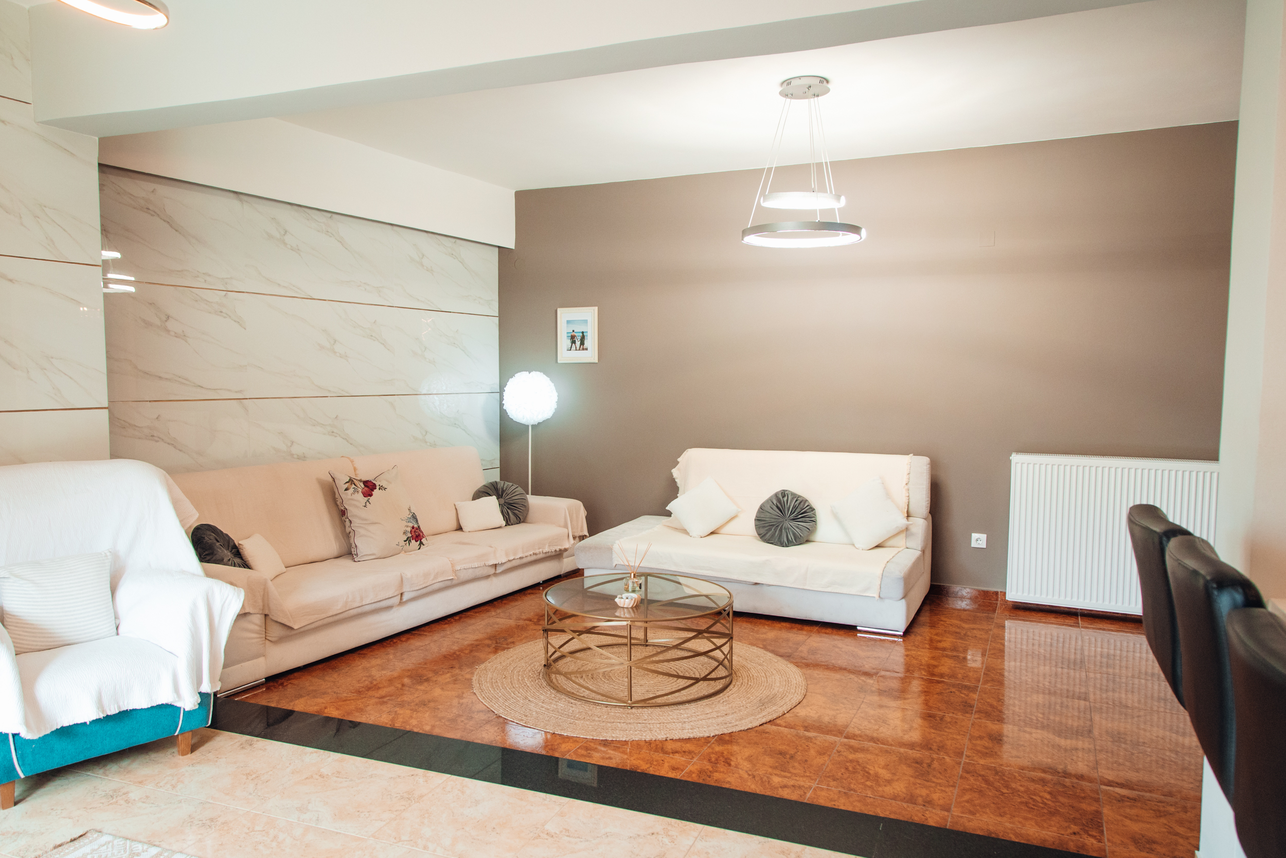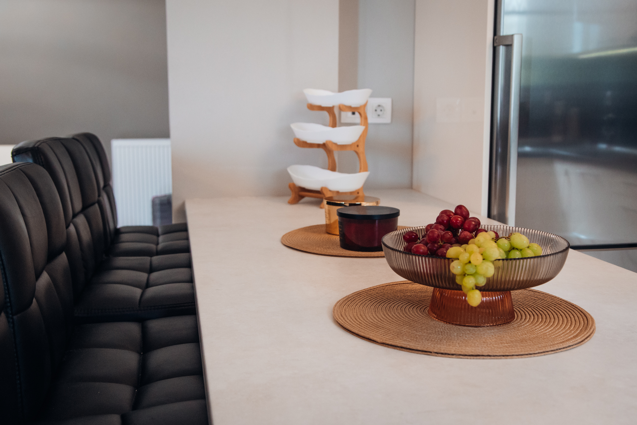 Luxury Villa Prada is designed on a single level, offering easy accessibility and a seamless flow between spaces. The villa features three spacious bedrooms and two modern bathrooms, all thoughtfully arranged for comfort and privacy. The open-plan living and dining area connects naturally to the fully equipped kitchen, creating a bright and welcoming central hub. Large windows and doors open to the outdoor terrace and garden, allowing natural light to fill the home and providing effortless access to the villa’s outdoor spaces. This single-floor layout ensures convenience, comfort, and a harmonious connection between indoor and outdoor living.