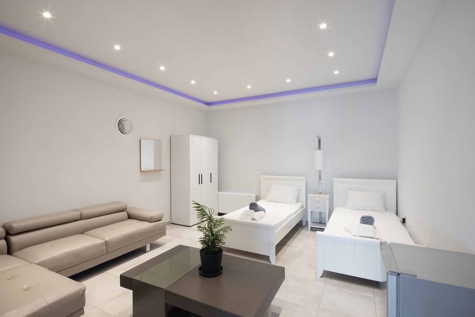 On the second floor, three spacious bedrooms provide an intimate and restful retreat, each with its own en-suite bathroom. The master suite stands out with a private terrace, walk-in dressing room, and stunning views, offering a peaceful sanctuary. Every bedroom features luxurious linens, ample storage, and soundproofing for an uninterrupted night's sleep.
